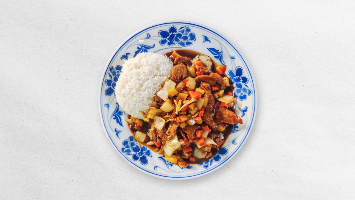 M57. Kachní maso v omáčce sa-ča s rýží 🌶️