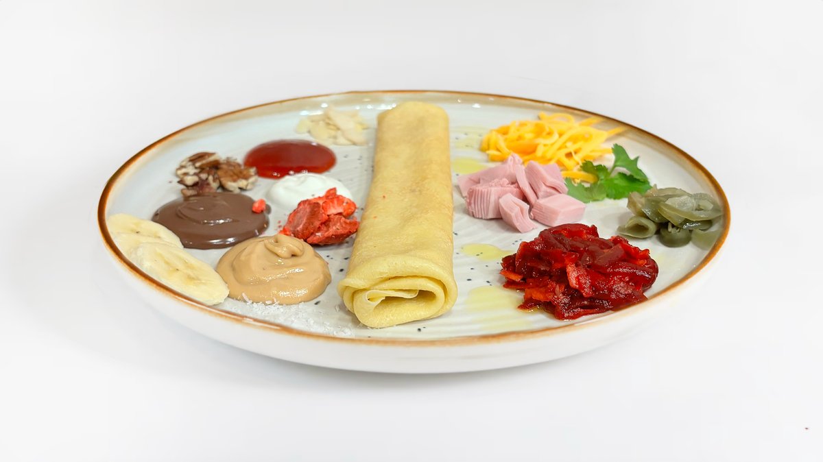 Jedinečné slané palačinky pro ty, kdo milují kombinaci slaných chutí a delikátního těsta. K dispozici i veganské, bezlepkové těsto z pohankové mouky.