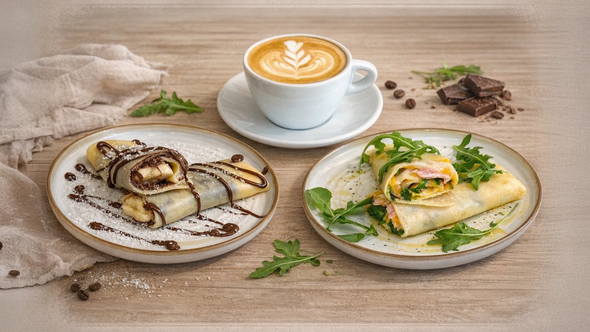 Vyber si svoji oblíbenou kombinaci palačinek, salátku a kávy či jiného nápoje. Ideální volba pro snídani, brunch, oběd nebo večeři.