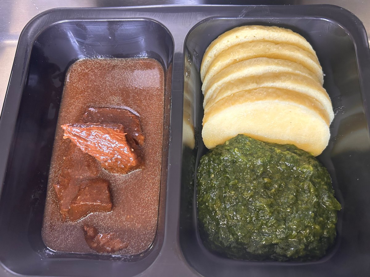 Hovězí na česneku se špenátem a bramborovým knedlíkem