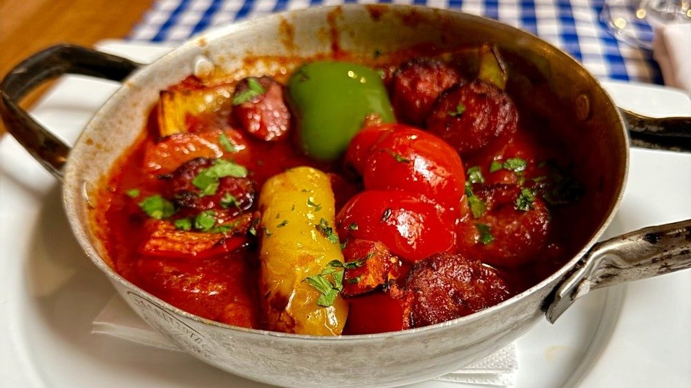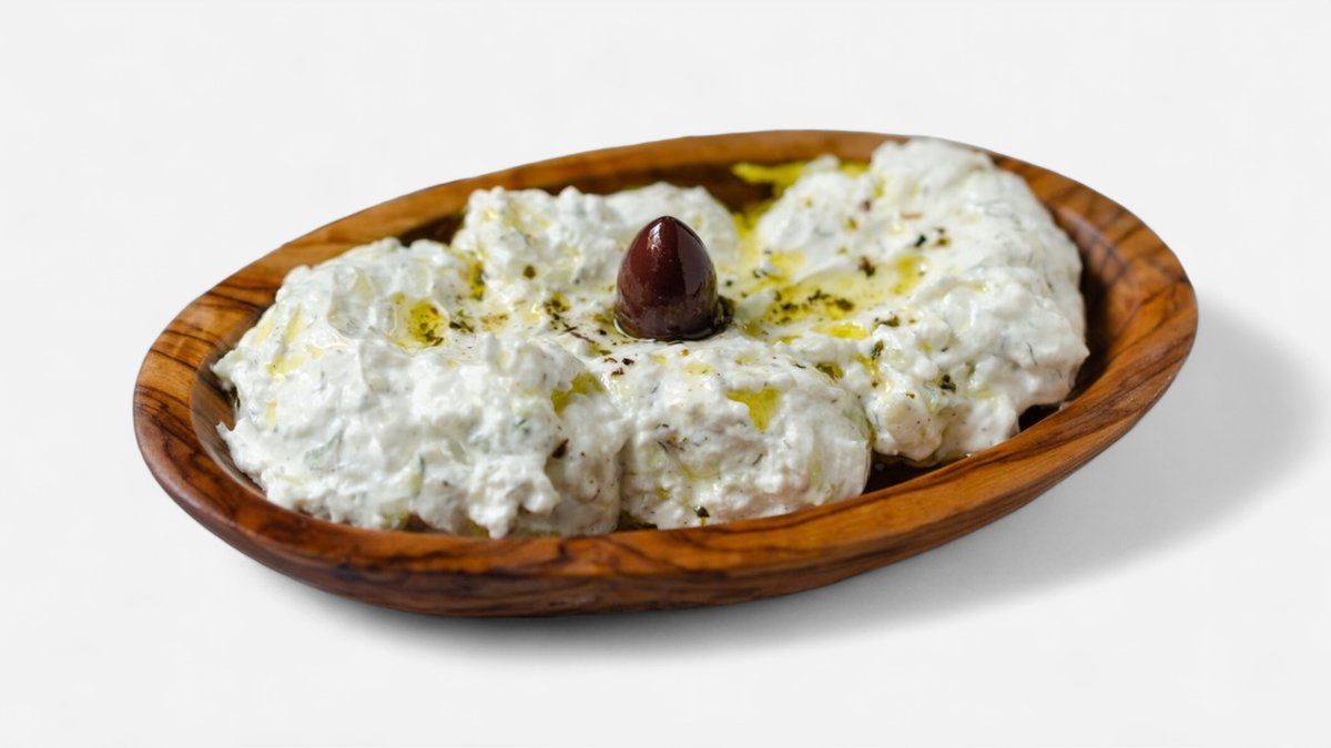 špíz z luxusní olympské panenky, pita, salátek, tzatziki