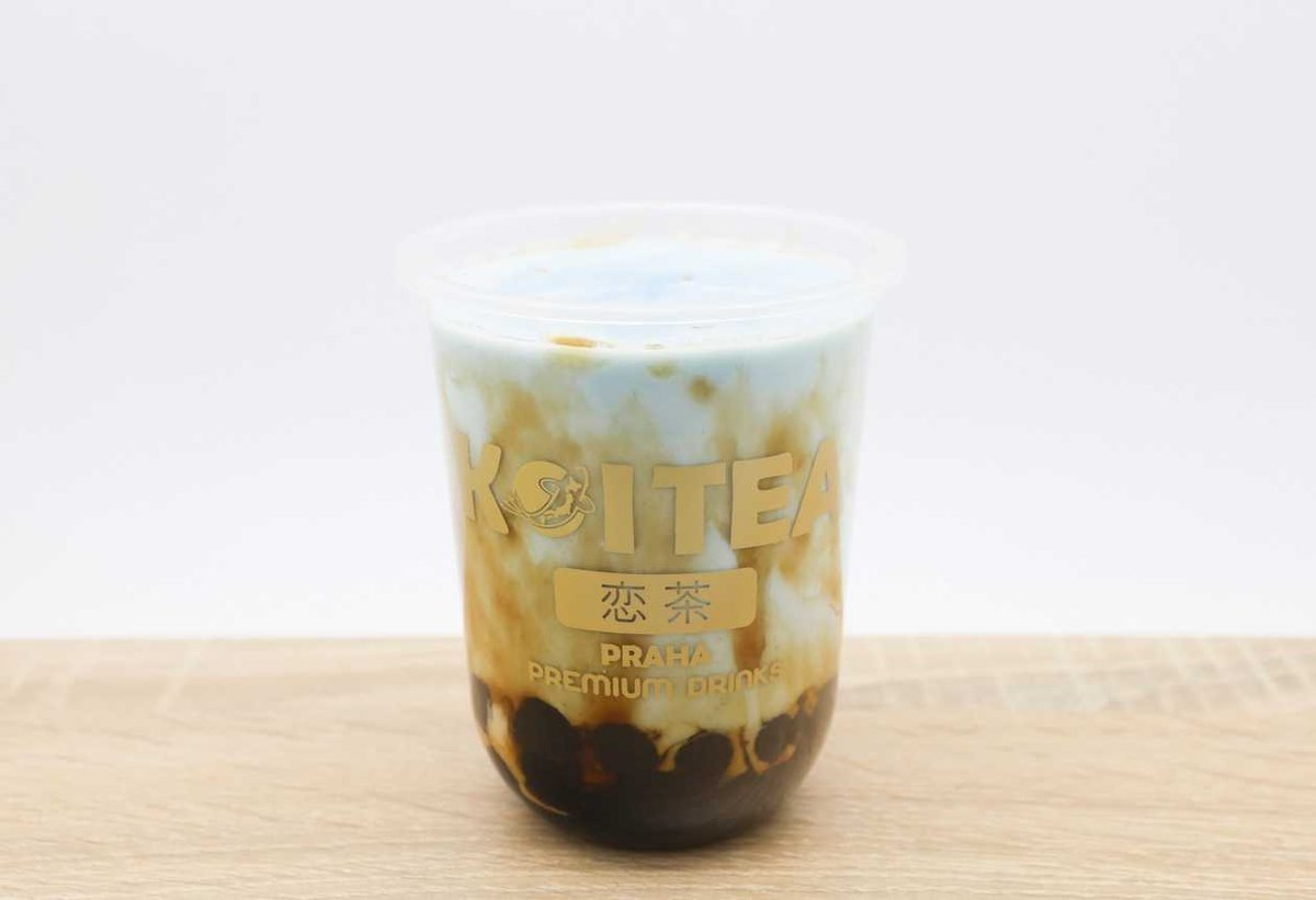 brown sugar příchuť s čerstvým mlékem a modrým čajem butterfly pea -topping není v ceně
