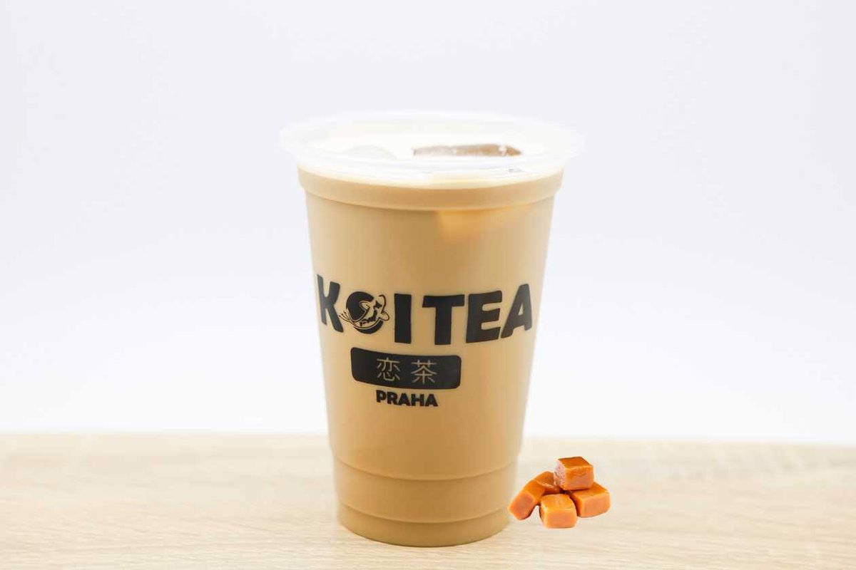 mléčný čaj s příchutí karamelu - topping není v ceně