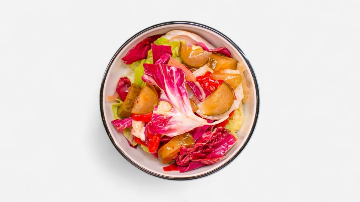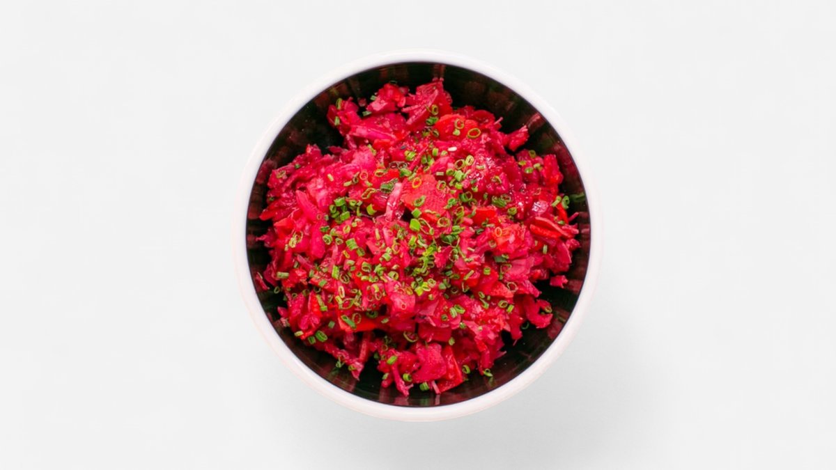 Naše verze kysaného kórejského salátu bez rybí omáčky a sojovky. Skvělý zdroj vitamínů a probiotik. Vegan.