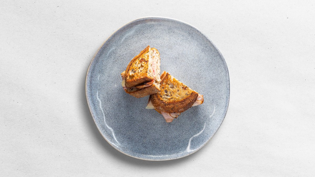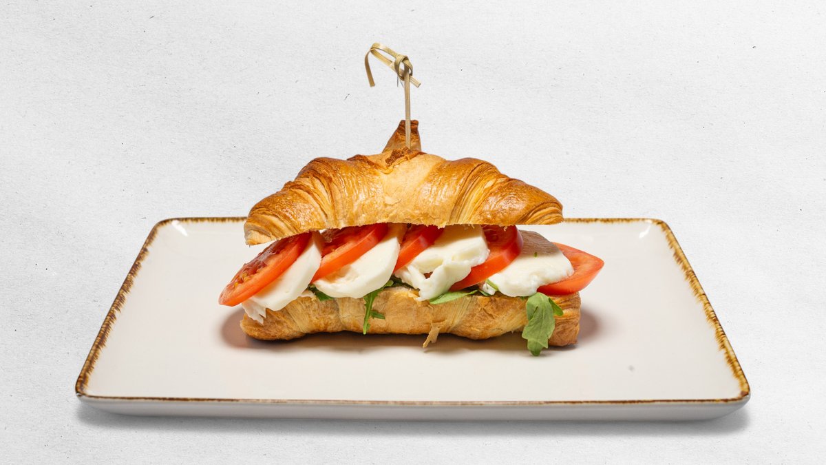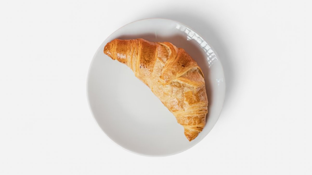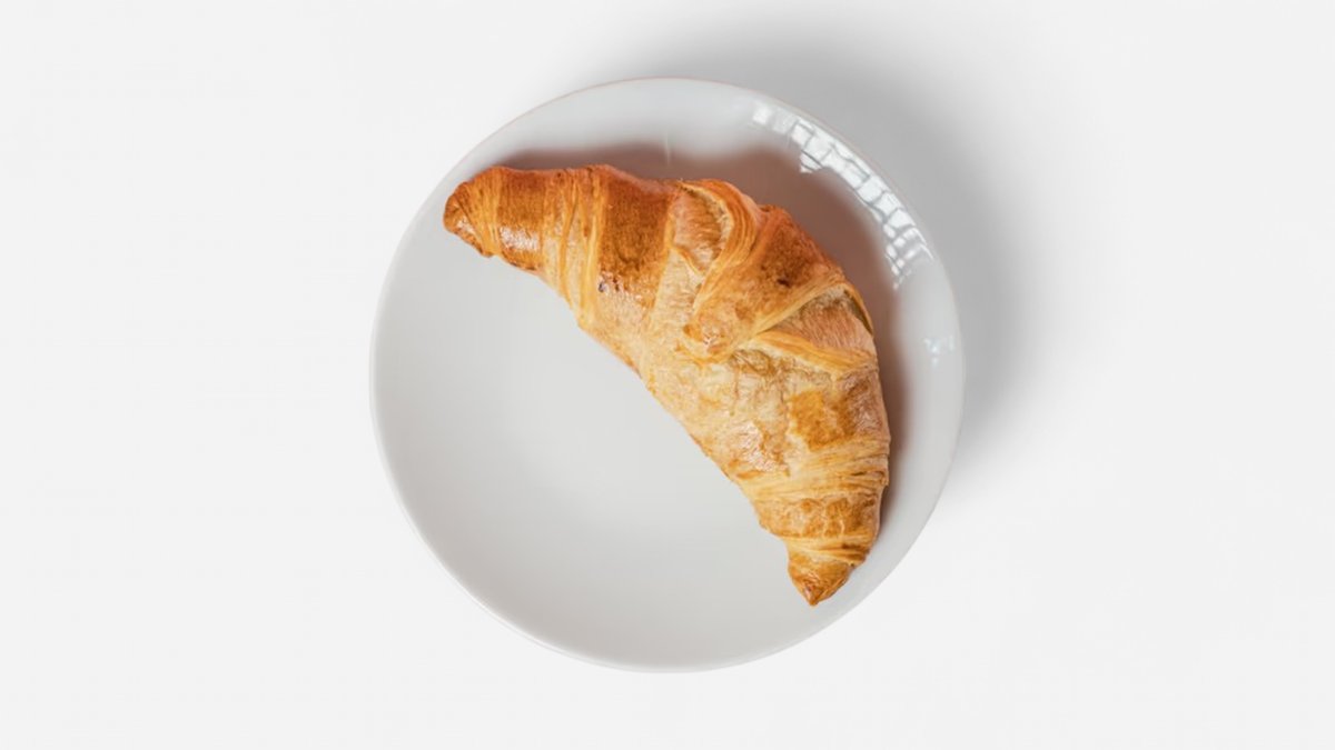 Croissant s míchaným vajíčkem a anglickou slaninou