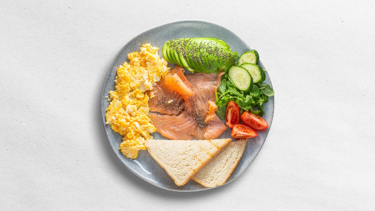 Míchaná vajíčka s uzeným lososem a toustem s avokádem
