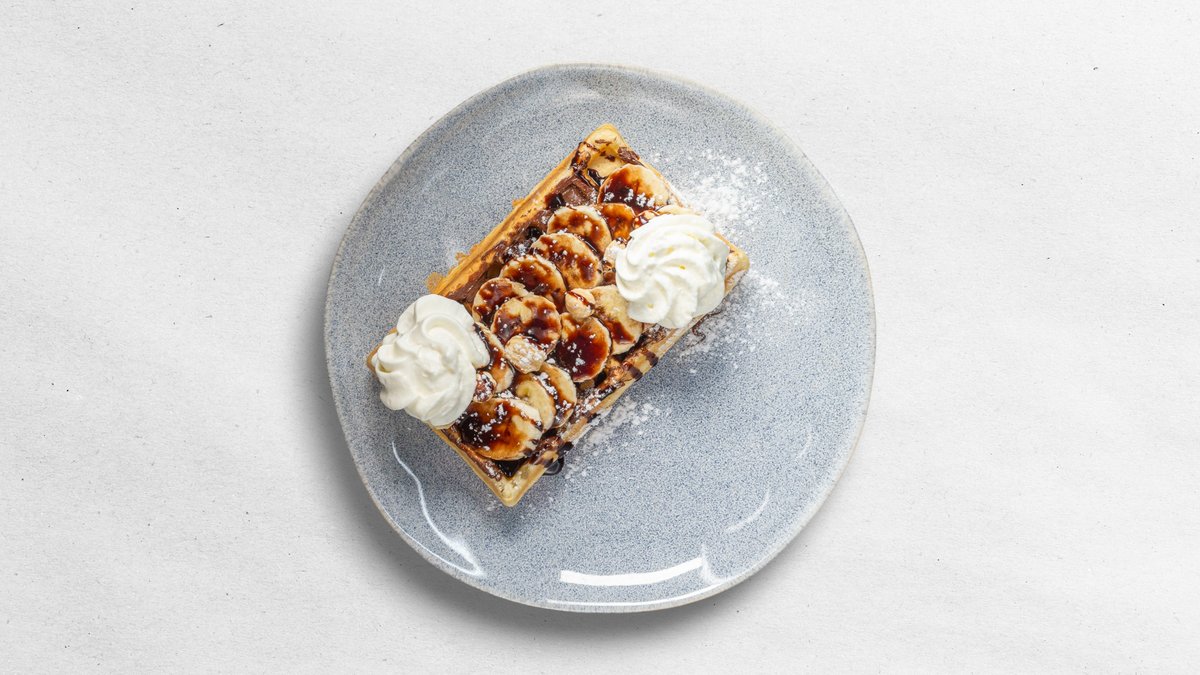 Slané vafle se slaninou, míchanými vejci, rukolou a cherry rajčaty