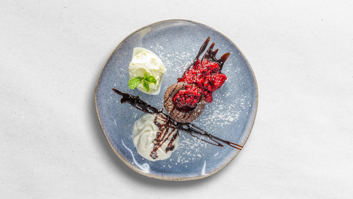 Čokoládový fondant 1 ks s vanilkovou zmrzlinou a malinami