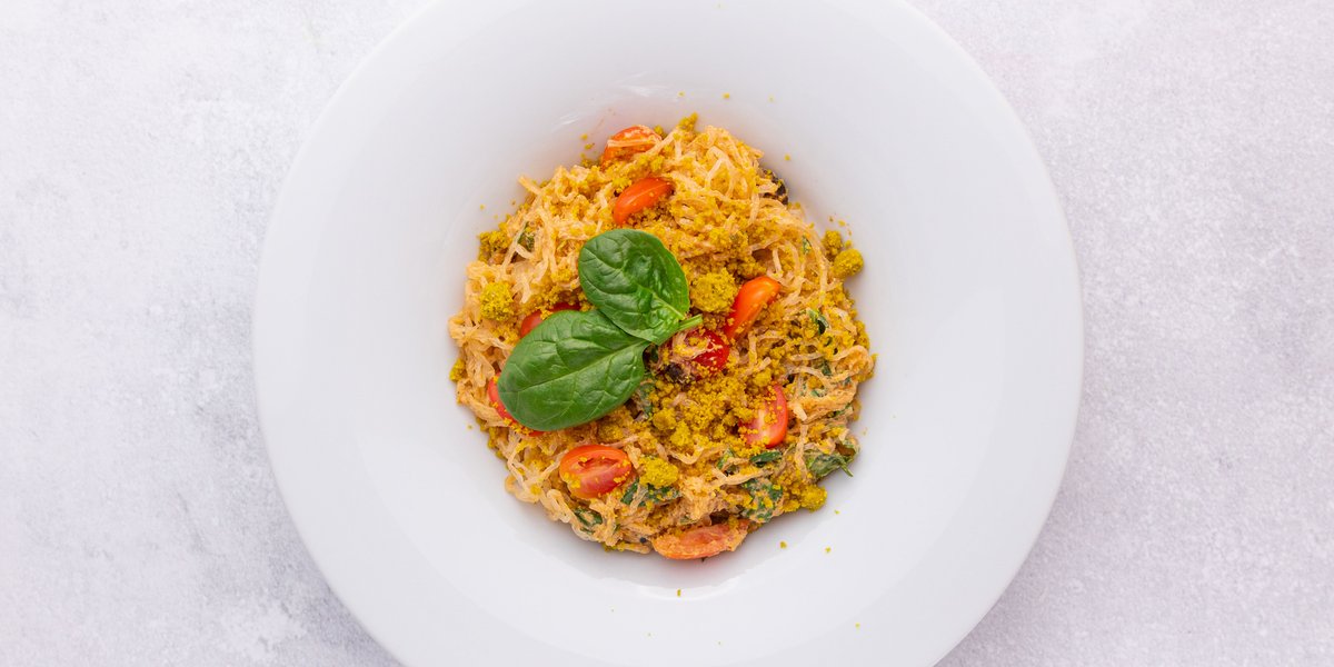 kelpové nudle, sušená rajčata, rajčata, kešu, slunečnicová semínka, olivy, jarní cibulka, česnek, lahůdkové droždí, sůl, pepř, italské koření, bazalka, agáve