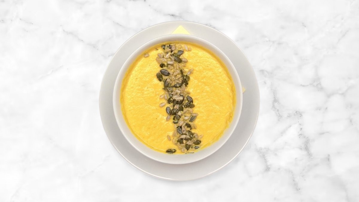 studená (raw) :) dýně, mrkev, mandlové mléko, kurkuma, zázvor, chilli, česnek, pepř, sůl, slunečnícová semínka, dýňová semínka, lahůdkové droždí