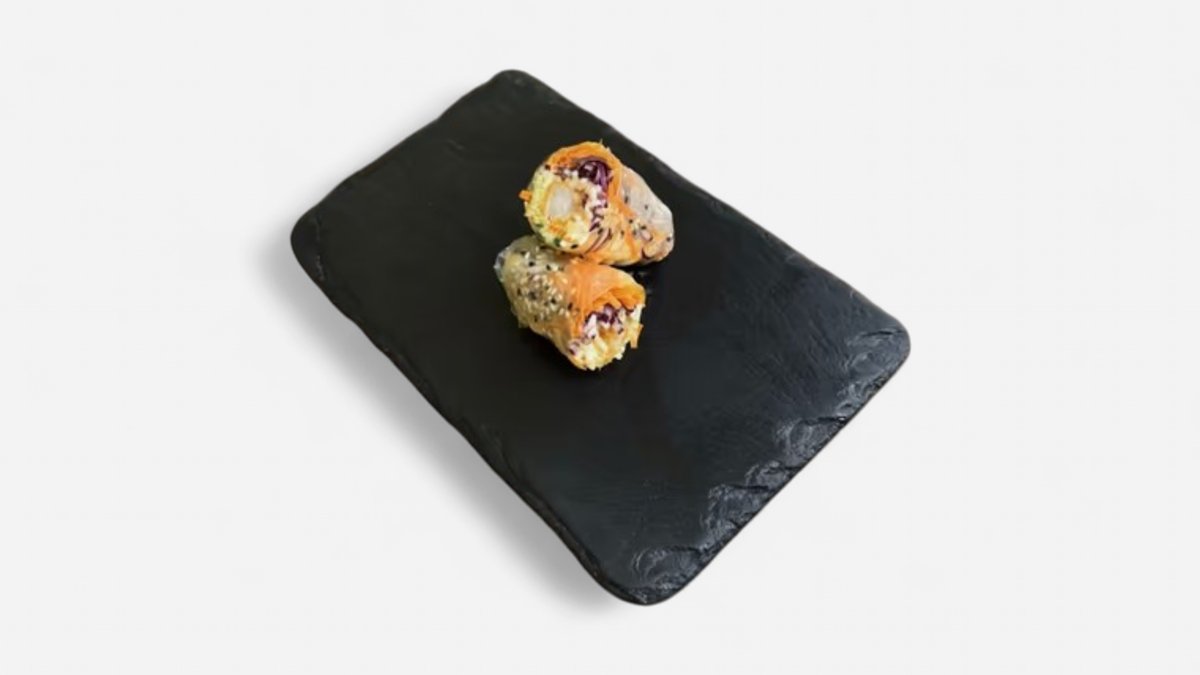 Fried shrimps, TNT sauce, carrot, rice noodles, cucumber, pineapple, cabbage