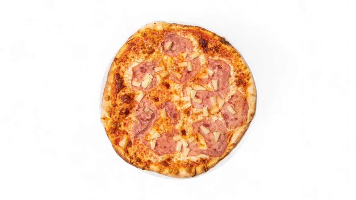 rajčatová omáčka, mozzarella, šunka, ananas, oregano