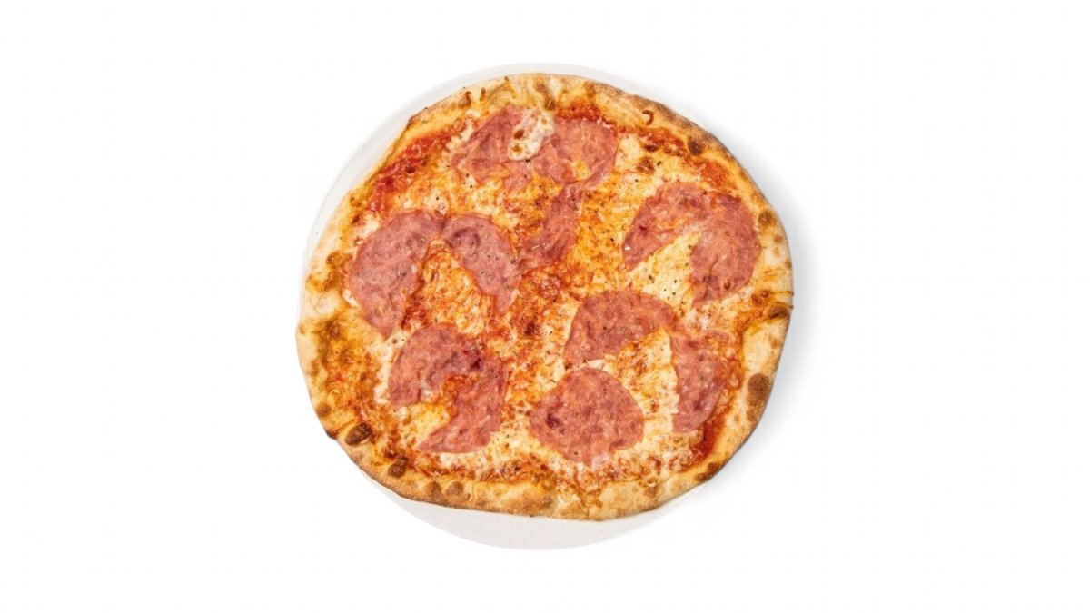 rajčatová omáčka, mozzarella, pikantní salám, oregano