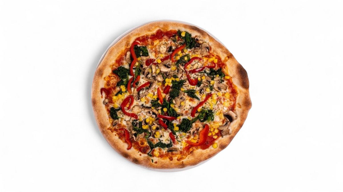 rajčatová omáčka, kukuřice, špenát, houby, fazolové lusky, oregano