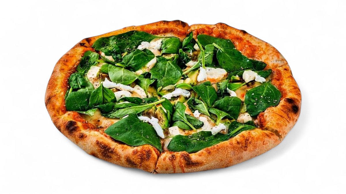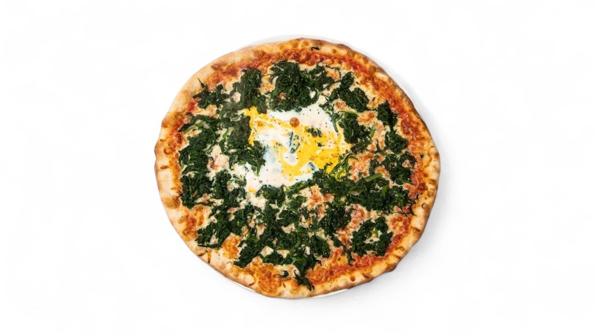 rajčatová omáčka, mozzarella, špenát, vejce, oregano