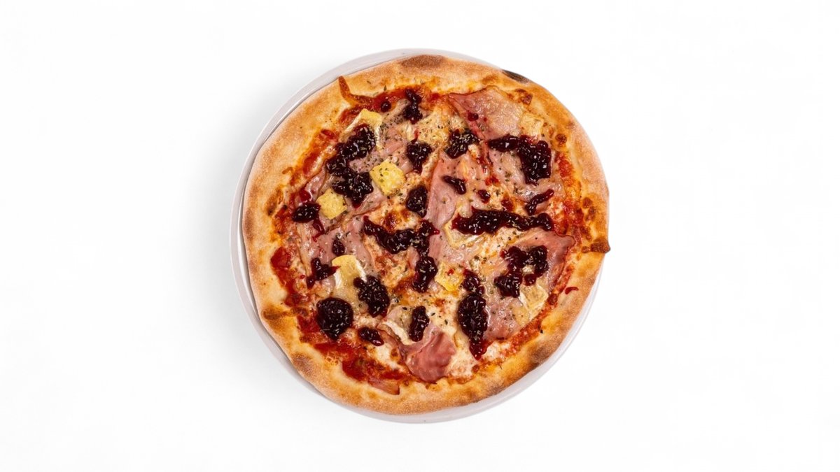smetana, mozzarela, plísňový sýr, šunka, brusinky