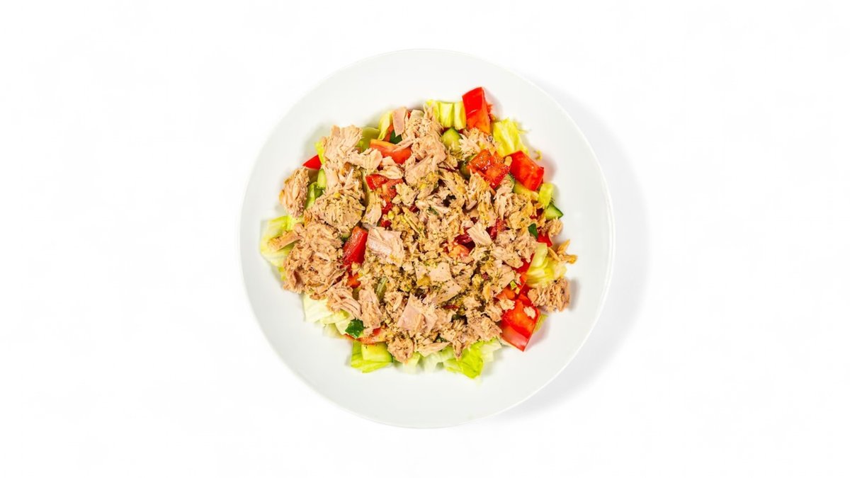 ledový salát, rukola, rajčata, okurka, paprika, tuňák, cibule ilustrační foto