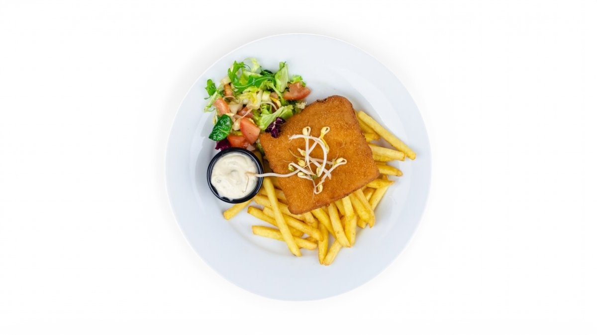 Krevety smažené v kokosovém těstíčku, mango majonéza, bagetka