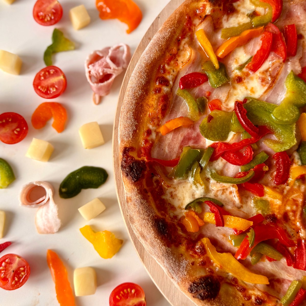 sugo, mozzarella, slanina, paprika, česnek