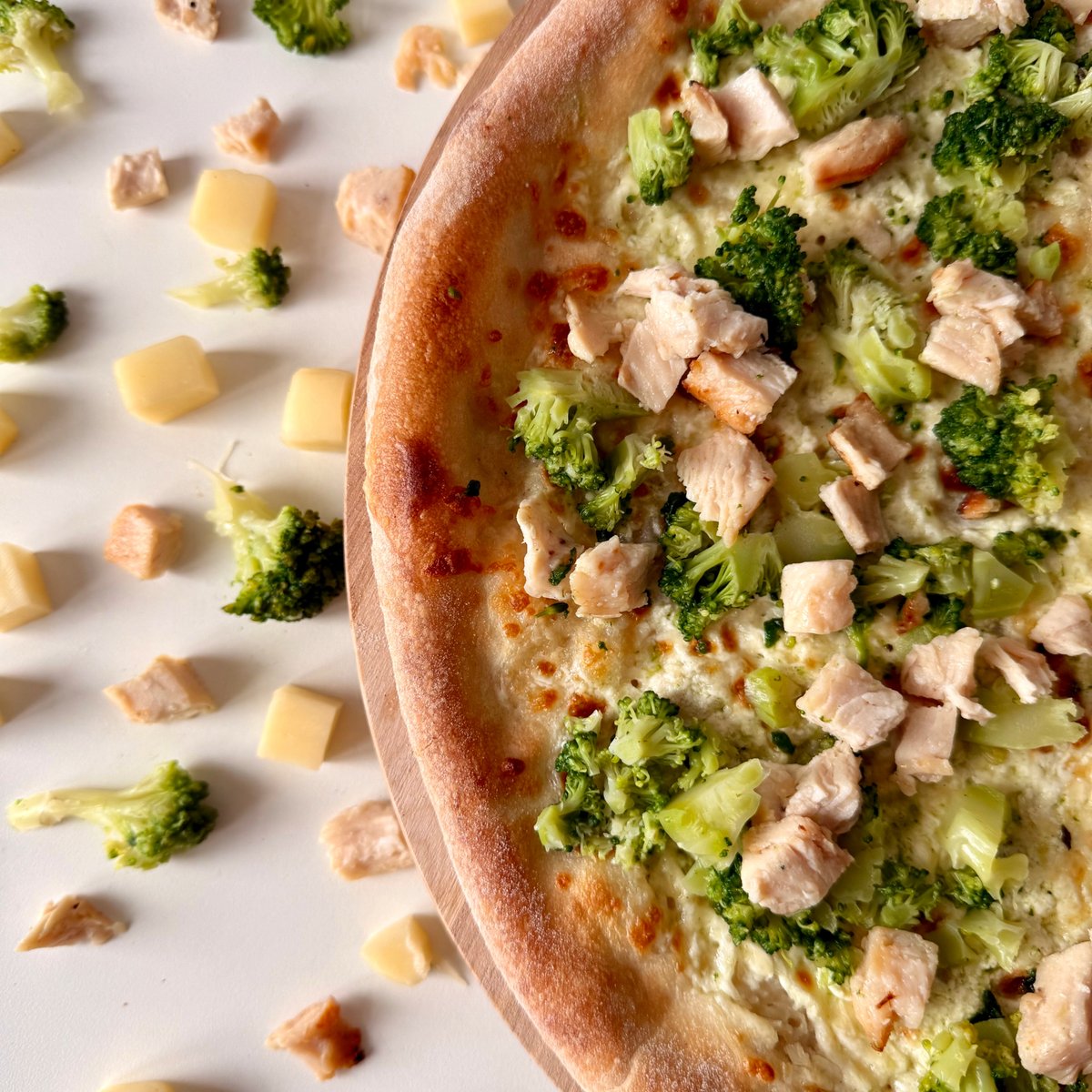 Smetana, mozzarella, brokolice, kuřecí maso, parmezán
