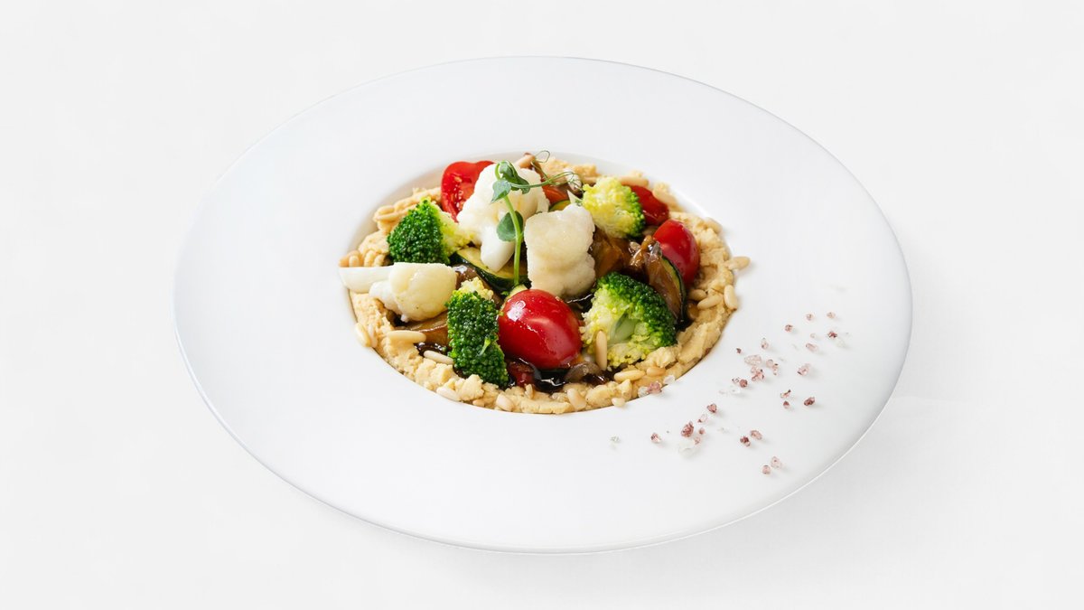 S fazolemi, brokolicí, hlívou ústřičnou, bílými houbami a ořechovo-hořčičnou omáčkou