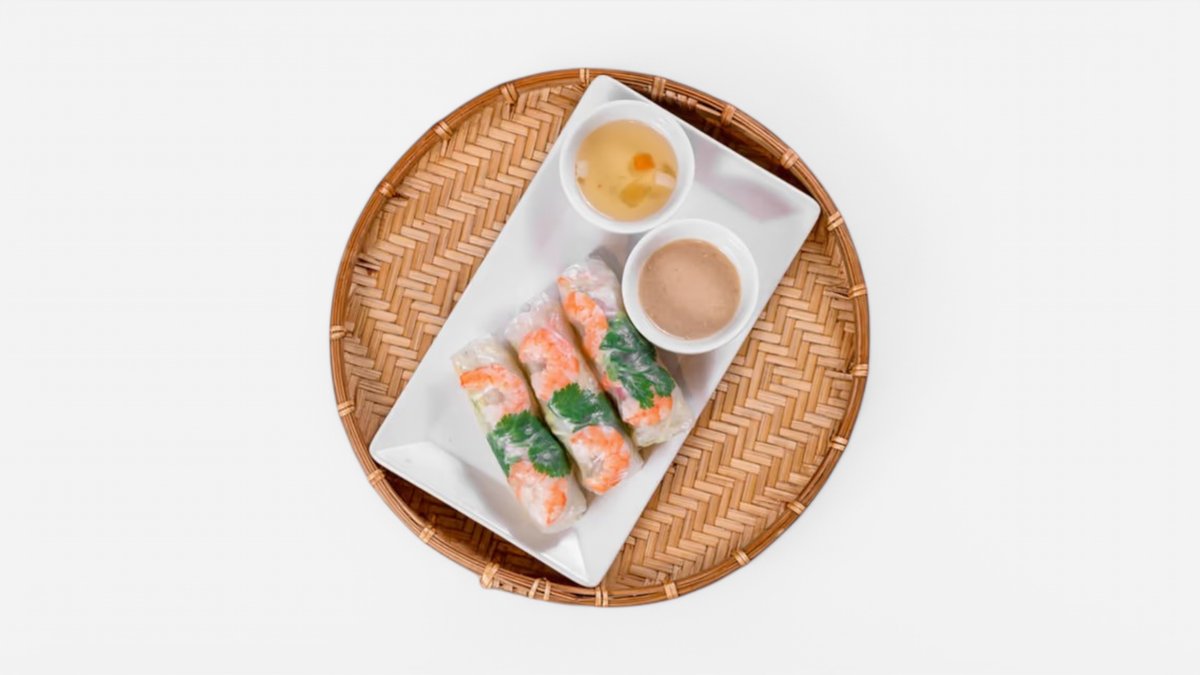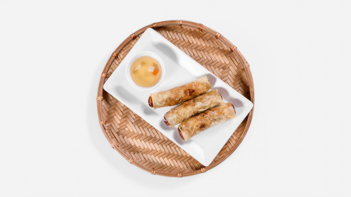 Smažené jarní závitky (3ks) s rýžovými nudlemi a zálivkou