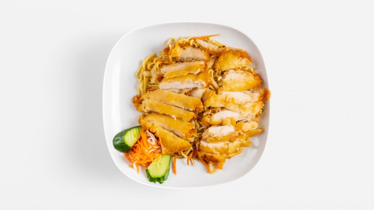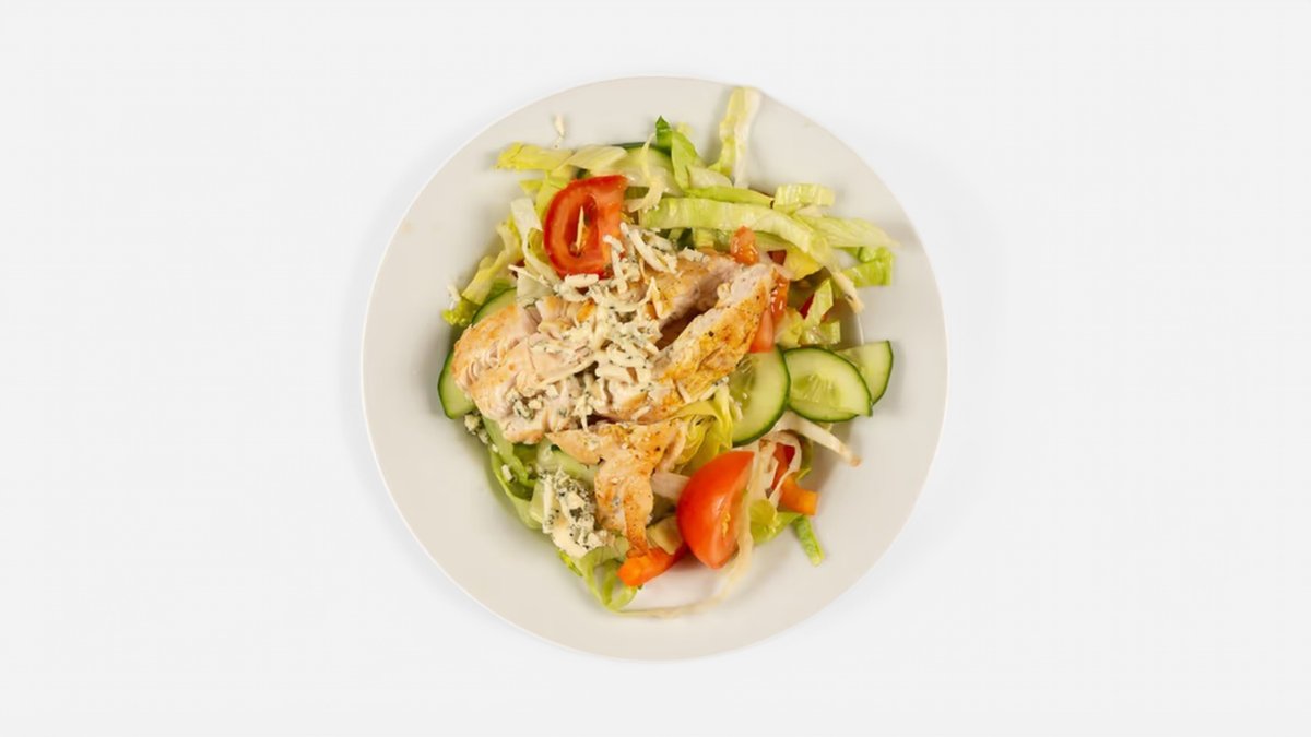 Křupavé kuře, ledový salat, rajčata, okurky.