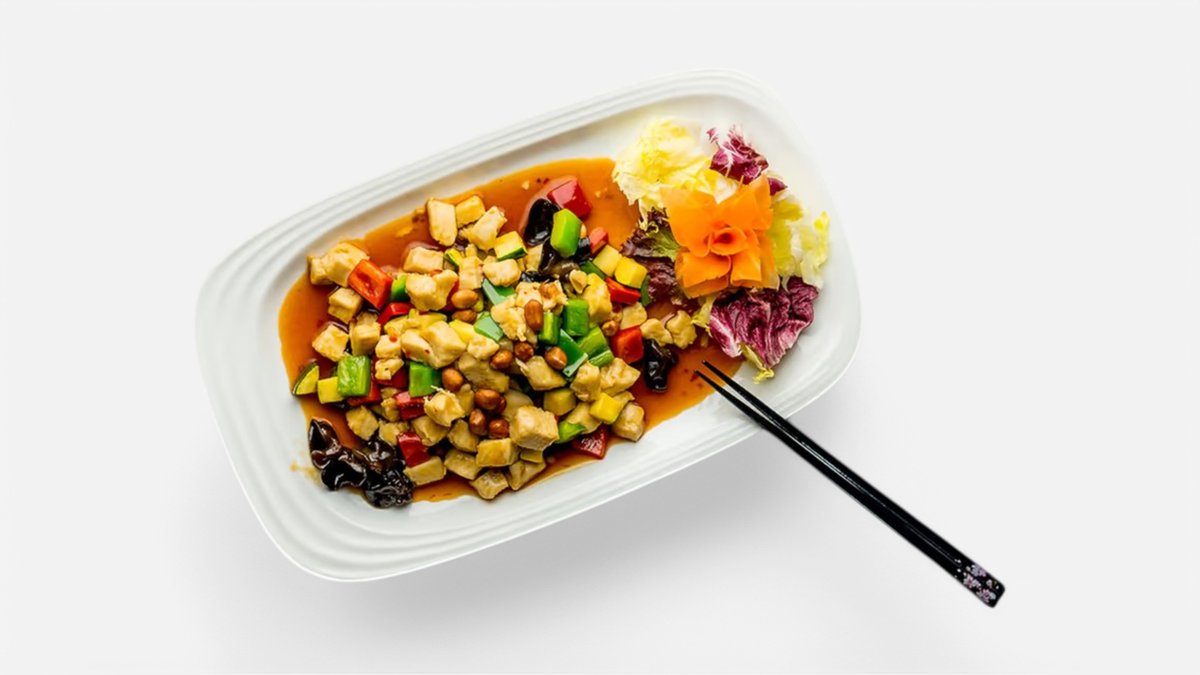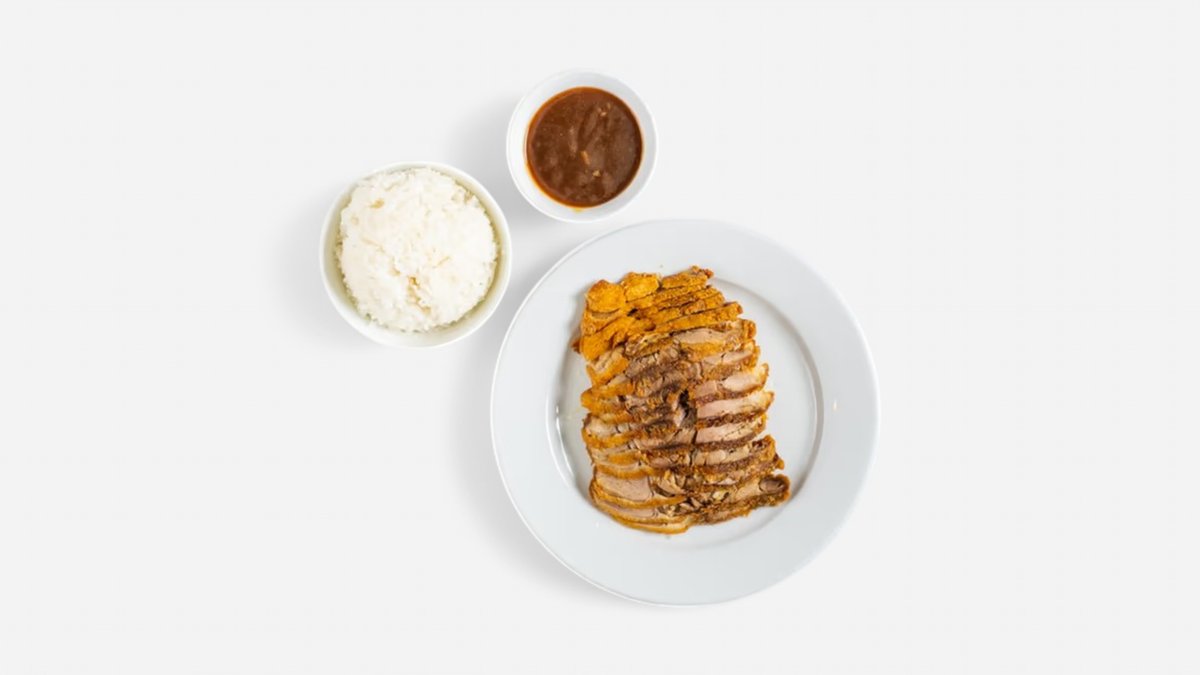 123. Křupavá kachna s arašídovou omáčkou a rýží
