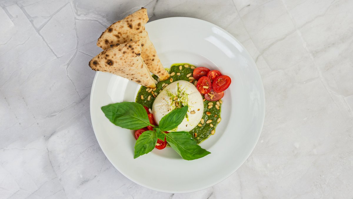 Mozzarella, mortadella, stracciatella, pesto, pistácie | Mozzarella, mortadella, stracciatella, pesto, pistachios