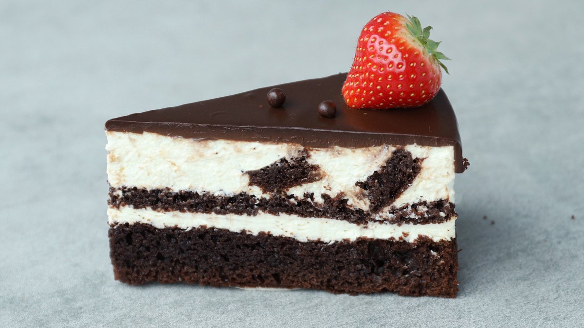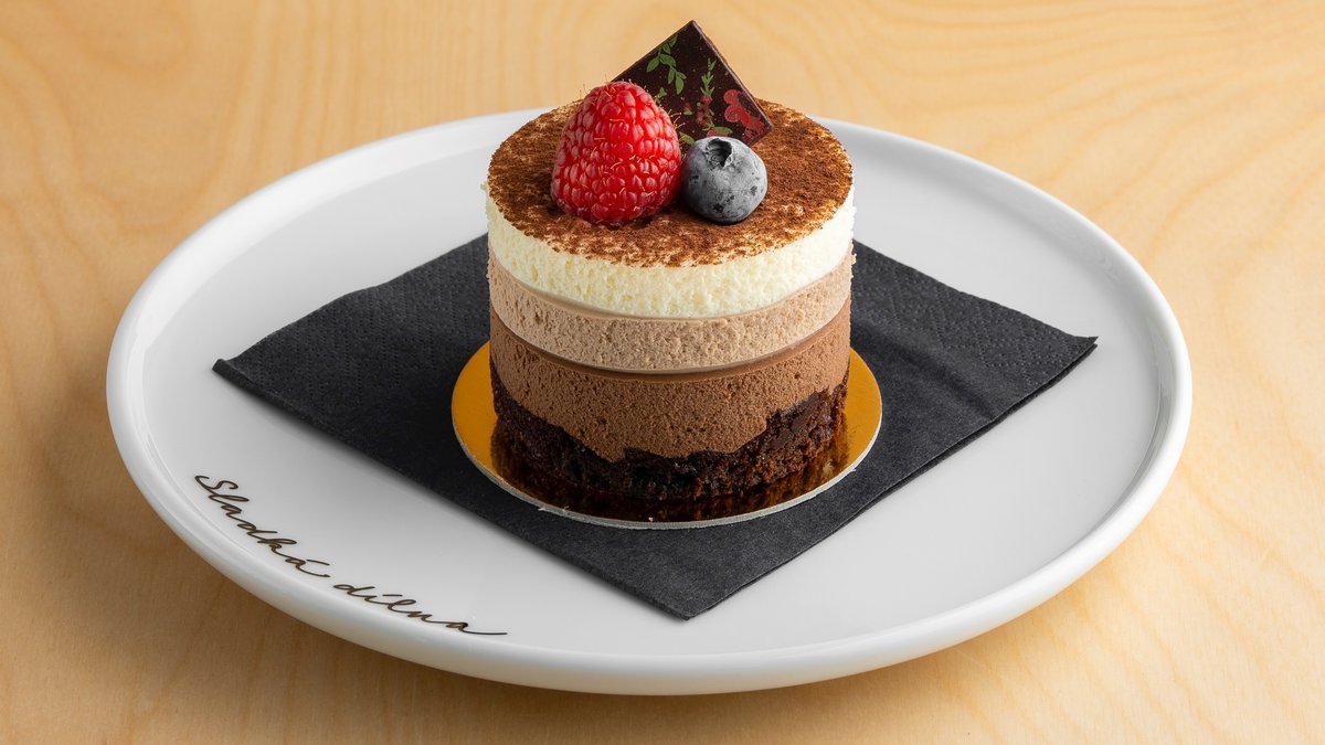 Tento dort vás okamžitě teleportuje do dětsví. Děláme ho z čokoládového korpusu, na který vlijeme tvarohový krém a po ztuhnutí nahoru dáme bohatou vrstvu ganáže ze smetany a hořké čokolády.