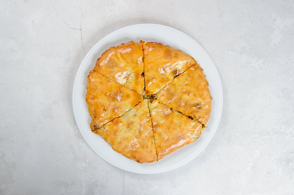 Plněné těsto těsto zapečené s mletým masem a gruzínským kořením