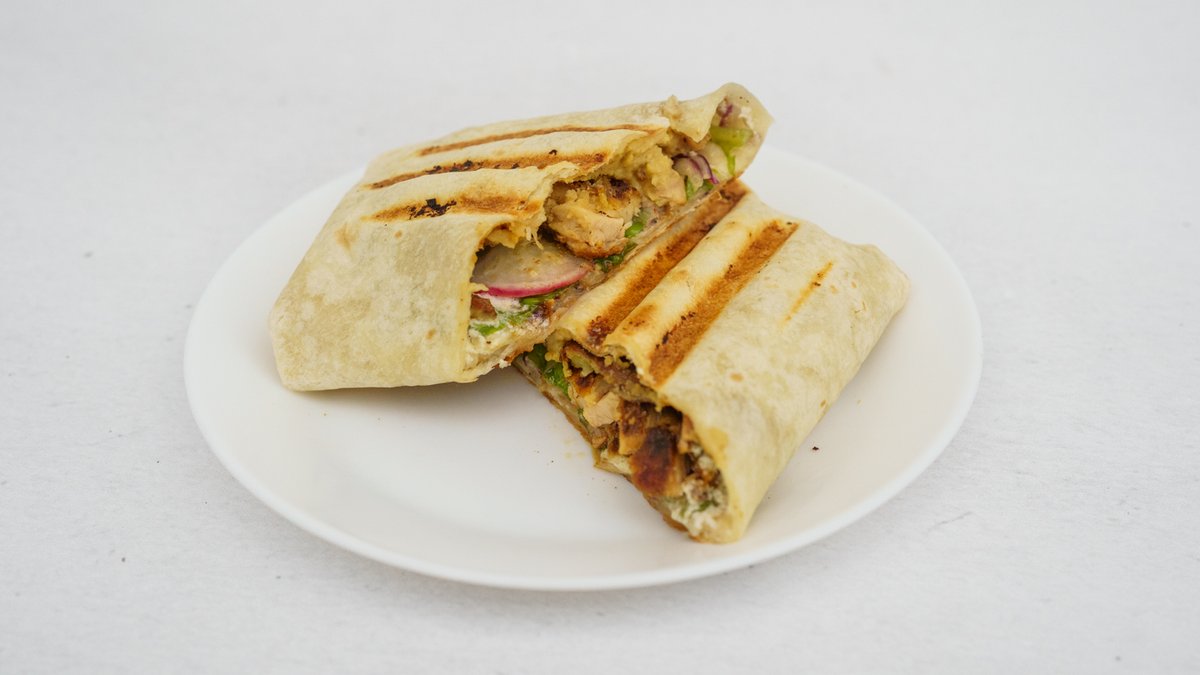 Kuřecí maso grilované, čedar, salát, papričky jalapeños, dresink a barbecue omáčka