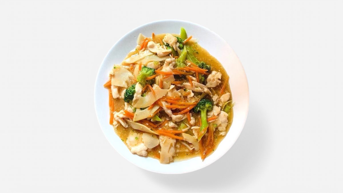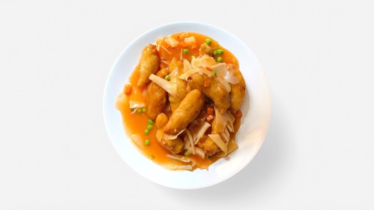 kuřecí maso obalované v těstíčku, zelenina, žampiony, bambus