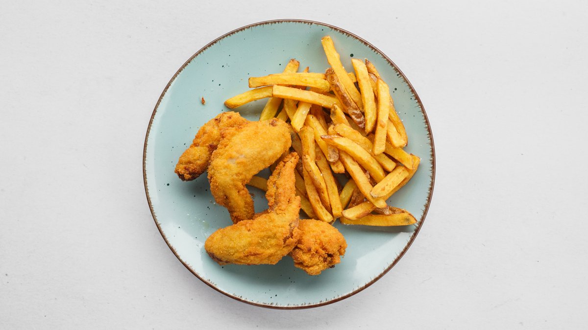 Smažená kuřecí křidélka s hranolky
