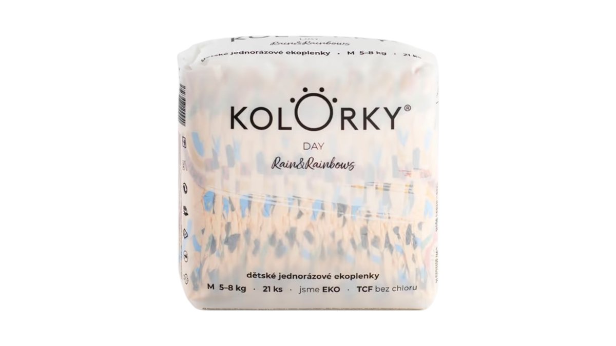 CZK 189.00KOLORKY DAY - déšť a duhy - M (5-8 kg) - 21 ks - jednorázové eko plenky
