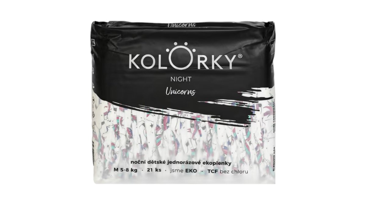 CZK 209.00KOLORKY NIGHT - jednorožci - M (5-8 kg) - 21 ks - noční jednorázové eko plenky