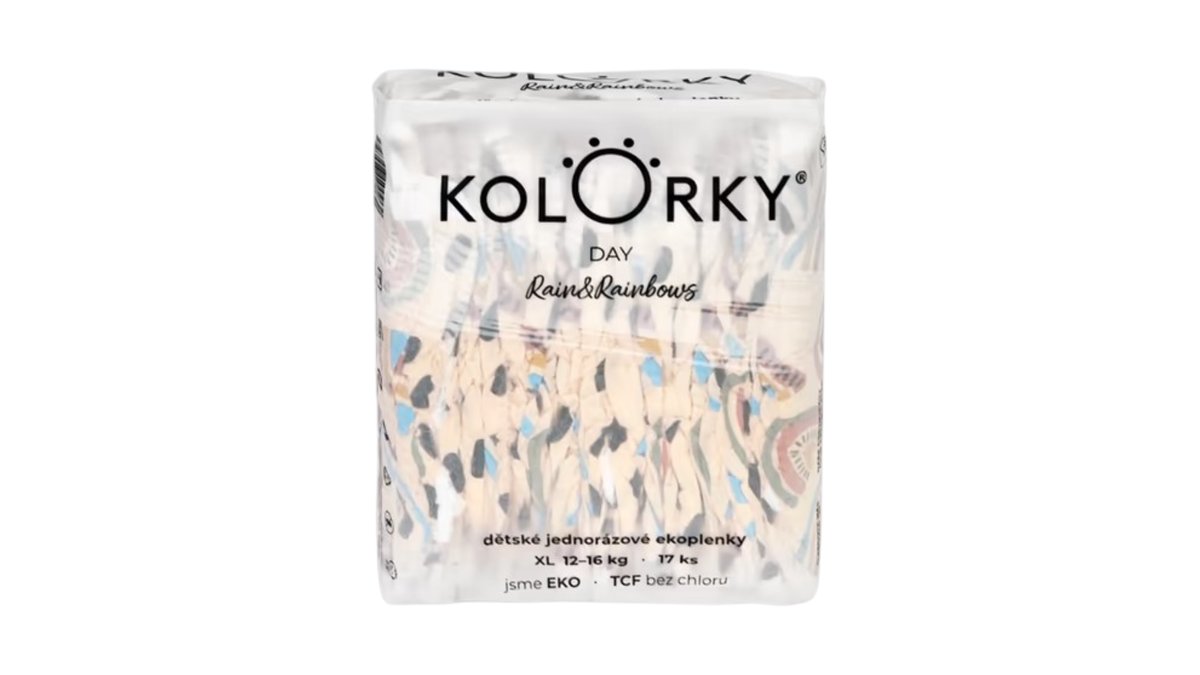 CZK 189.00KOLORKY DAY - déšť a duhy - XL (12-16 kg) - 17 ks - jednorázové eko plenky