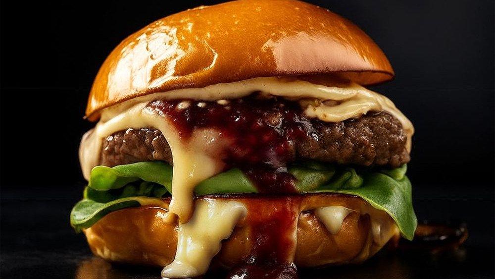 vyzrálé hovězí, čedar, nakládaná červená cibule, karamelizovaná cibule, BBQ, whiskey majonéza