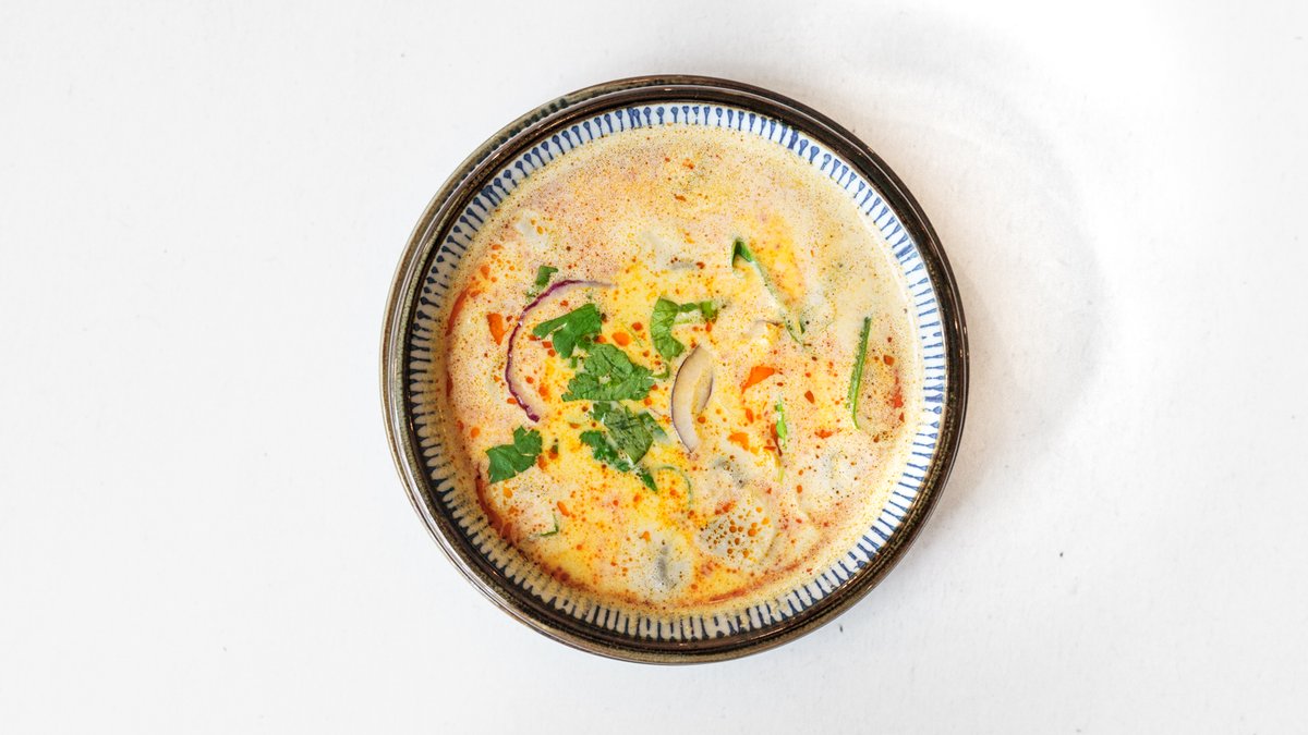 kokosové mléko, smetanové mléko, koriandr, jarní cibule