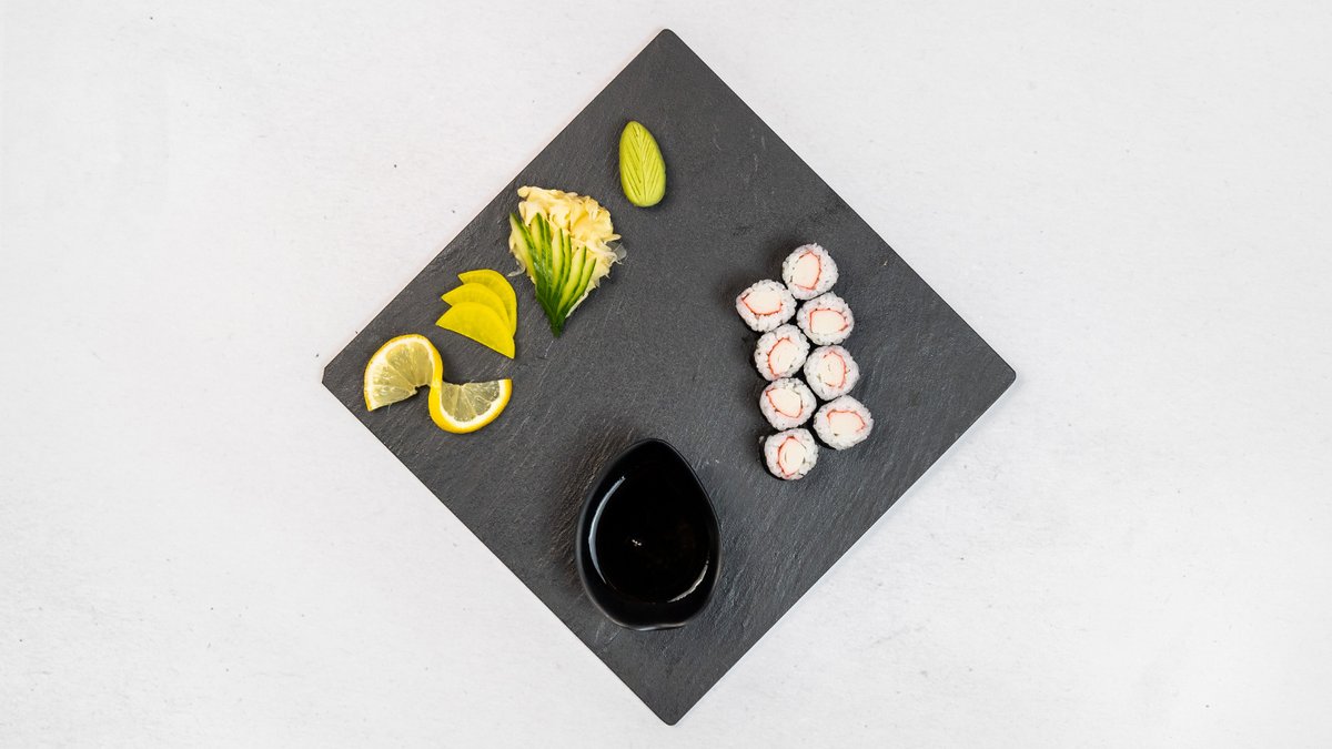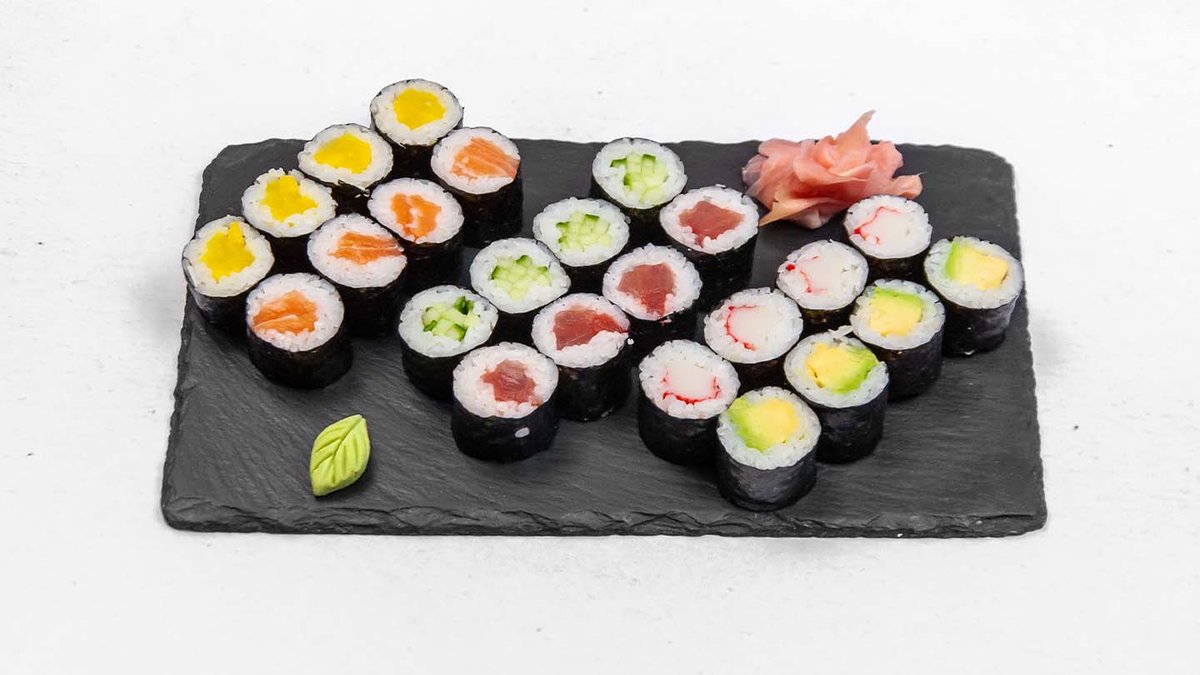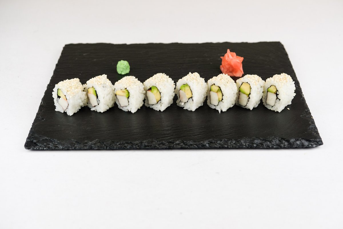 4ks maki s avokádem, 4ks california s lososem, 4ks maki s okurkou, 4ks california s krabími tyčinkami