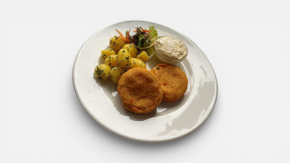 2. Smažený hermelín, vařené brambory, tatarská omáčka