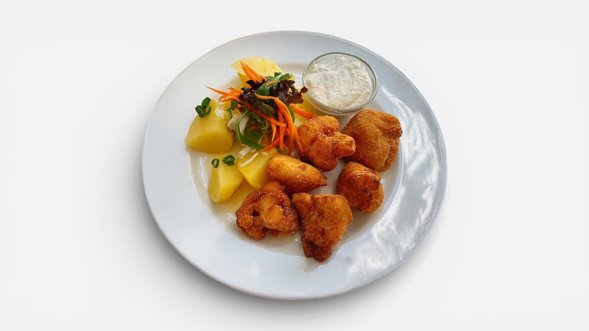 2. Smažený květák, vařené brambory, tatarská omáčka