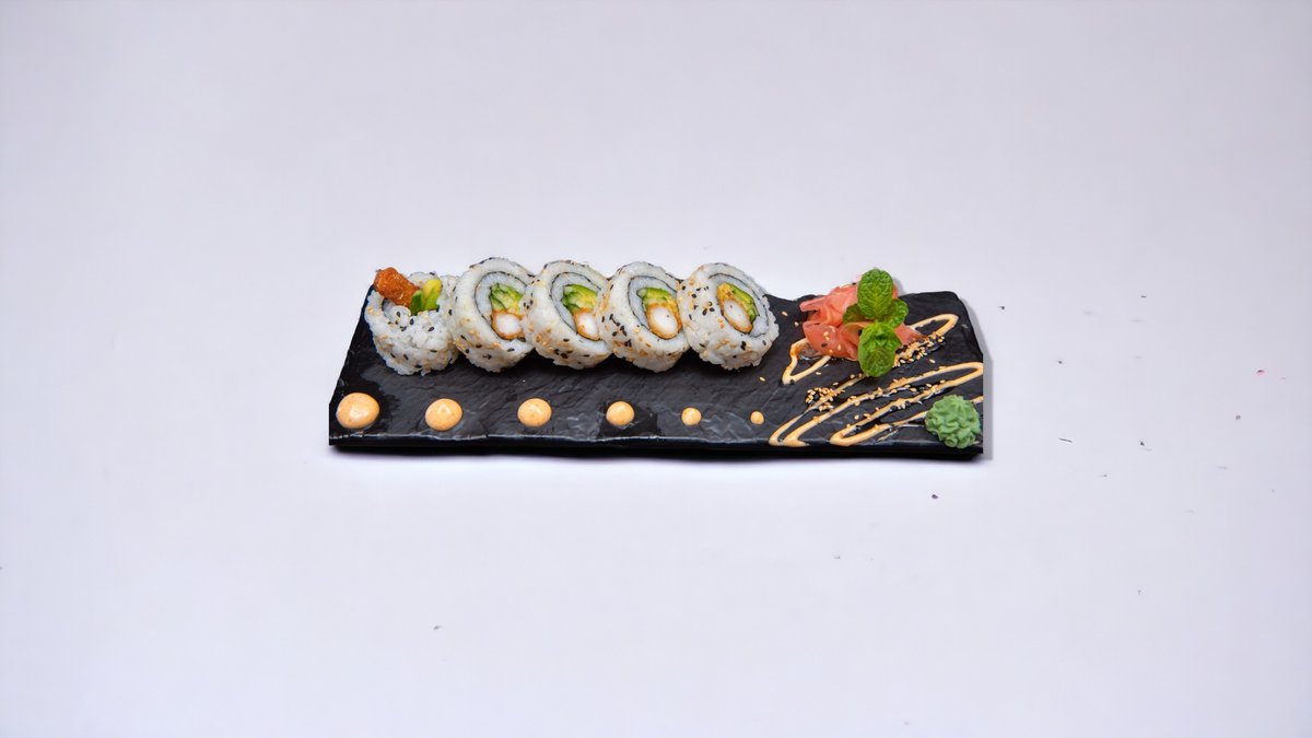smažená kreveta v tempuře, avokádo, majonéza, sezam