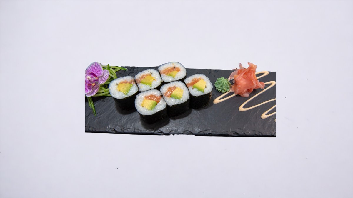 losos, avokádo, nakládaná ředkev, okurka, sezam