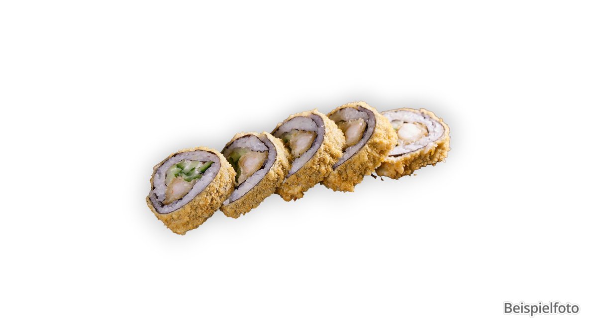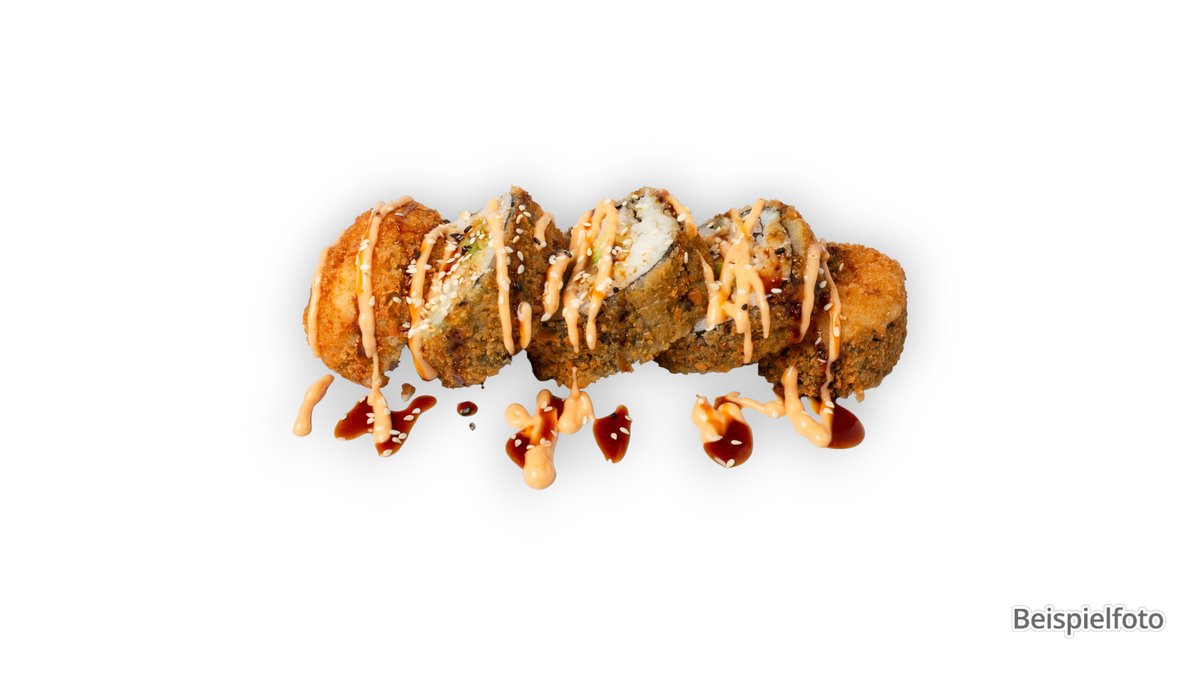 all rolls are fried in a crispy tempura batter with cucumbers, sesame, spring onions, special sauce, ginger, wasabi and soy sauce and served in a size of your choice