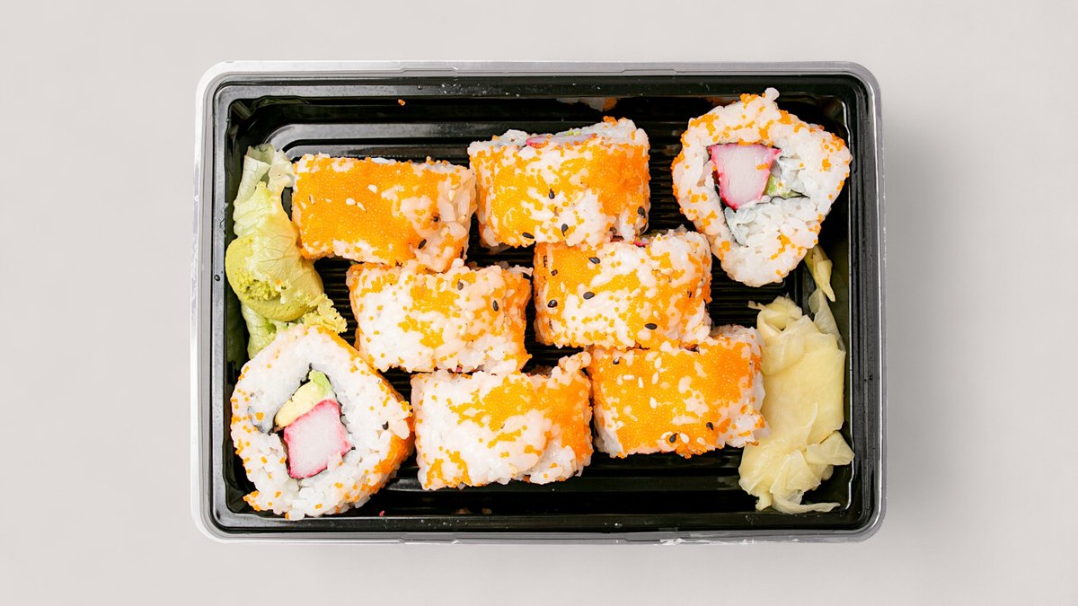 18 Stück 1x Sake Nigiri 1x Maguro Nigiri 1x Ebi Nigiri 1x Tamago Nigiri 6x Sake Maki 8x California Inside Out
