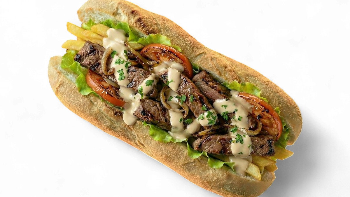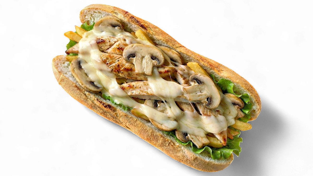 mit saftigem Rumpsteakstreifen vom Grill, Champignons, Zwiebeln, geschmolzenem Gouda und cremiger TrĂĽffelmayonnaise