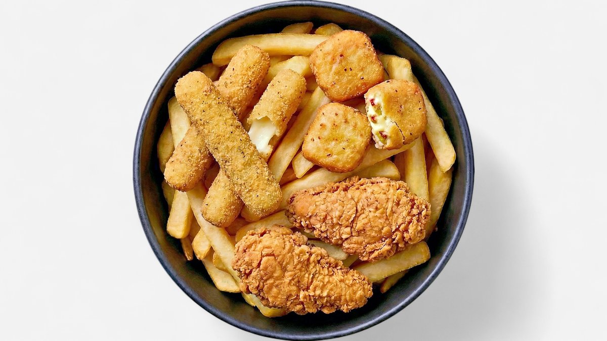 3x Crispy 2x Chili-Cheese-Nuggets 2x Mozzarella Sticks und eine kleine Pommes frites
