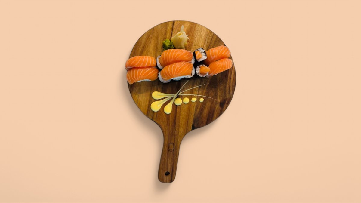 für 1 Person, 8x Tiger Rolls, 4x Lachs Nigiri, 3x Lachs Sashimi