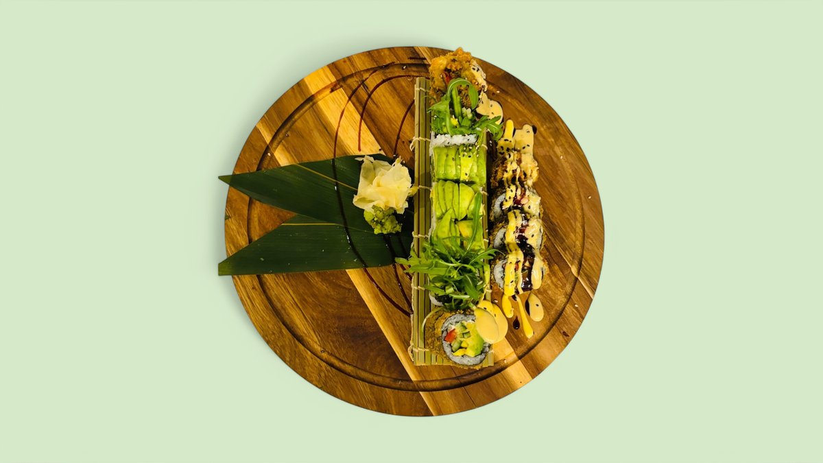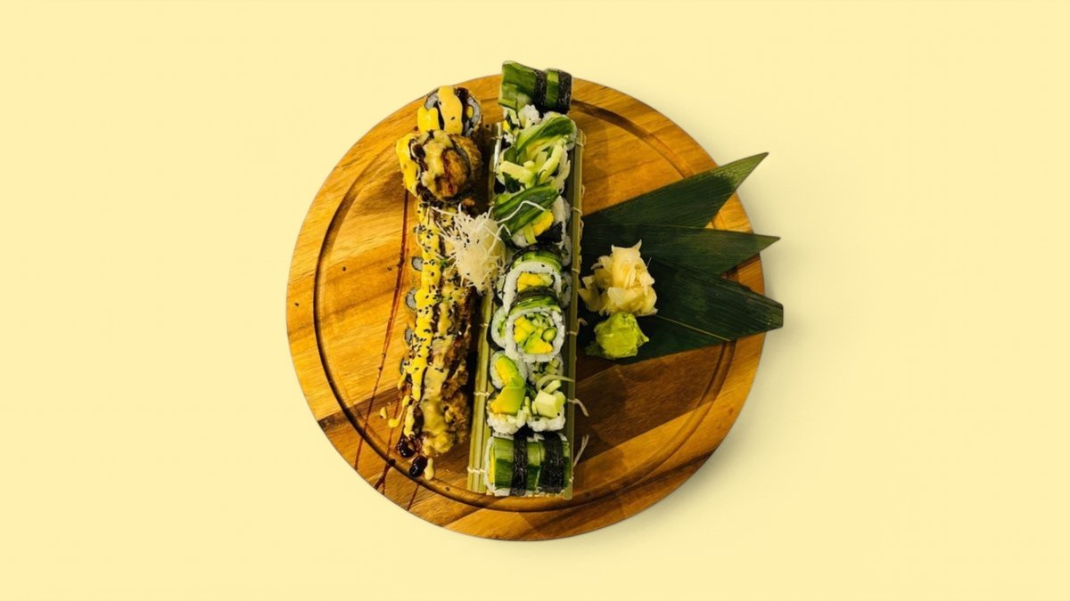 veggie für 2 Personen, 10x Veggie Tempura Rolls, 8x Veggie Kreative Rolls, 8x Gurken Maki, 8x Avocado Maki